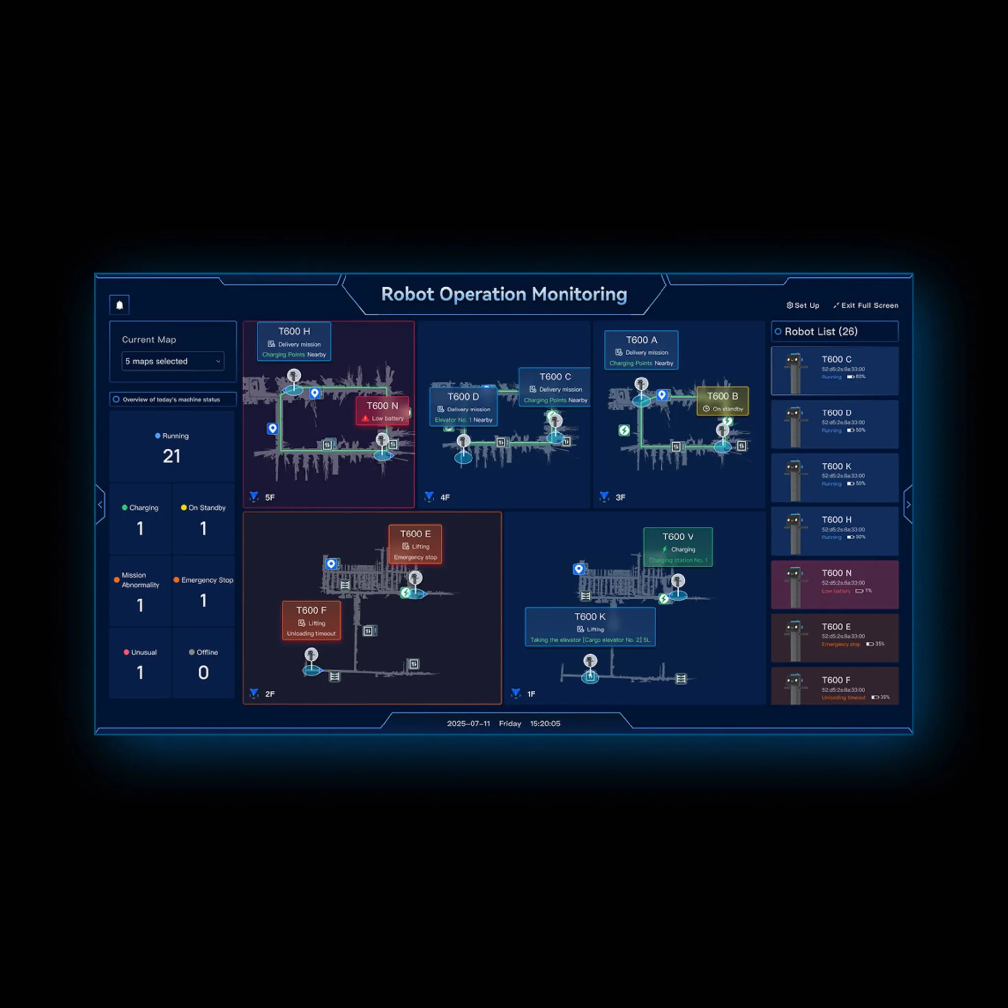 Được trang bị hệ thống điều hướng và nhận thức tiên tiến, PUDU T600 có thể nhận diện vị trí lưu trữ và tự động thực hiện thao tác lấy – đặt hàng, giúp vận hành kho bãi không người lái hiệu quả và đáng tin cậy.