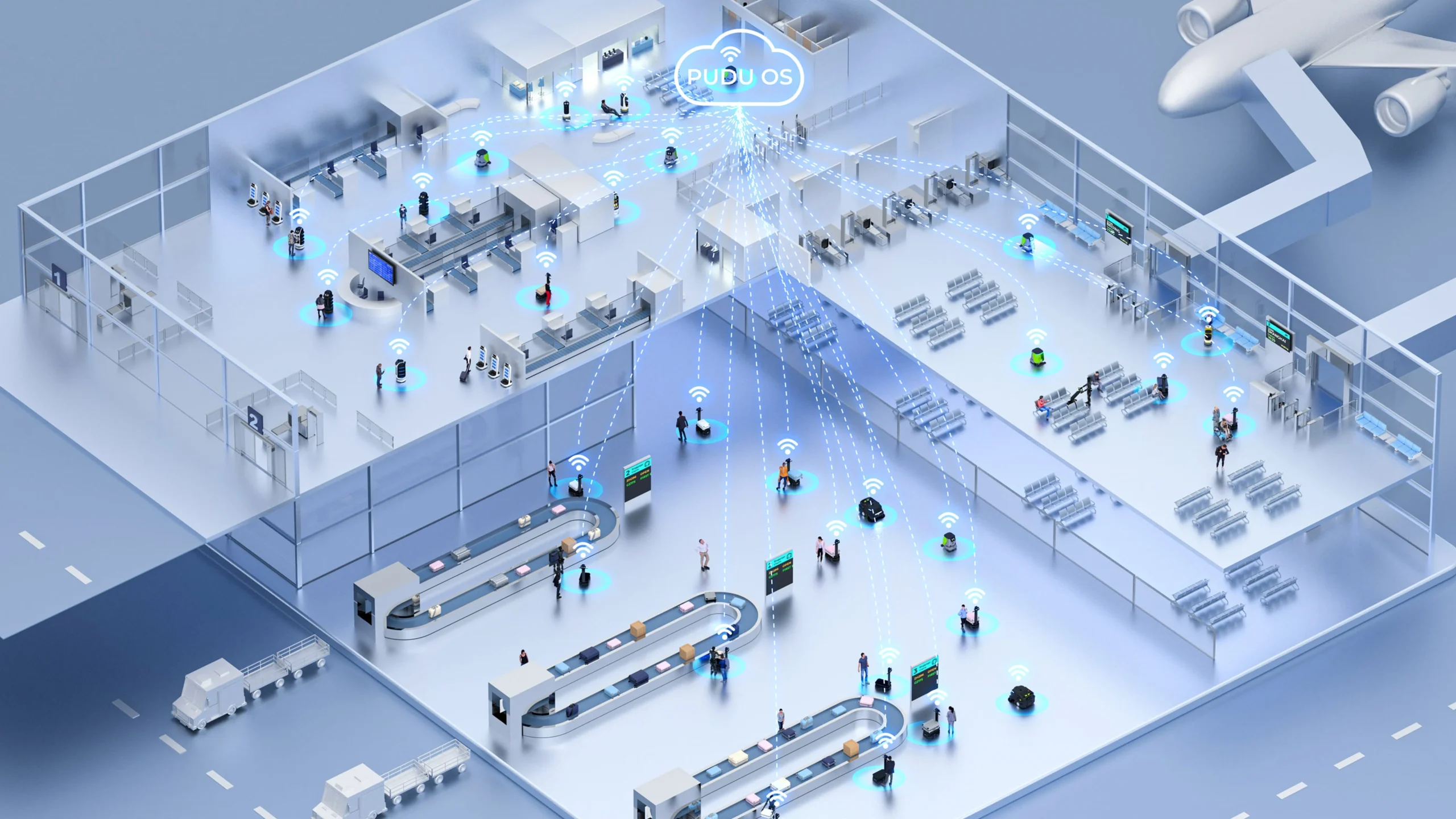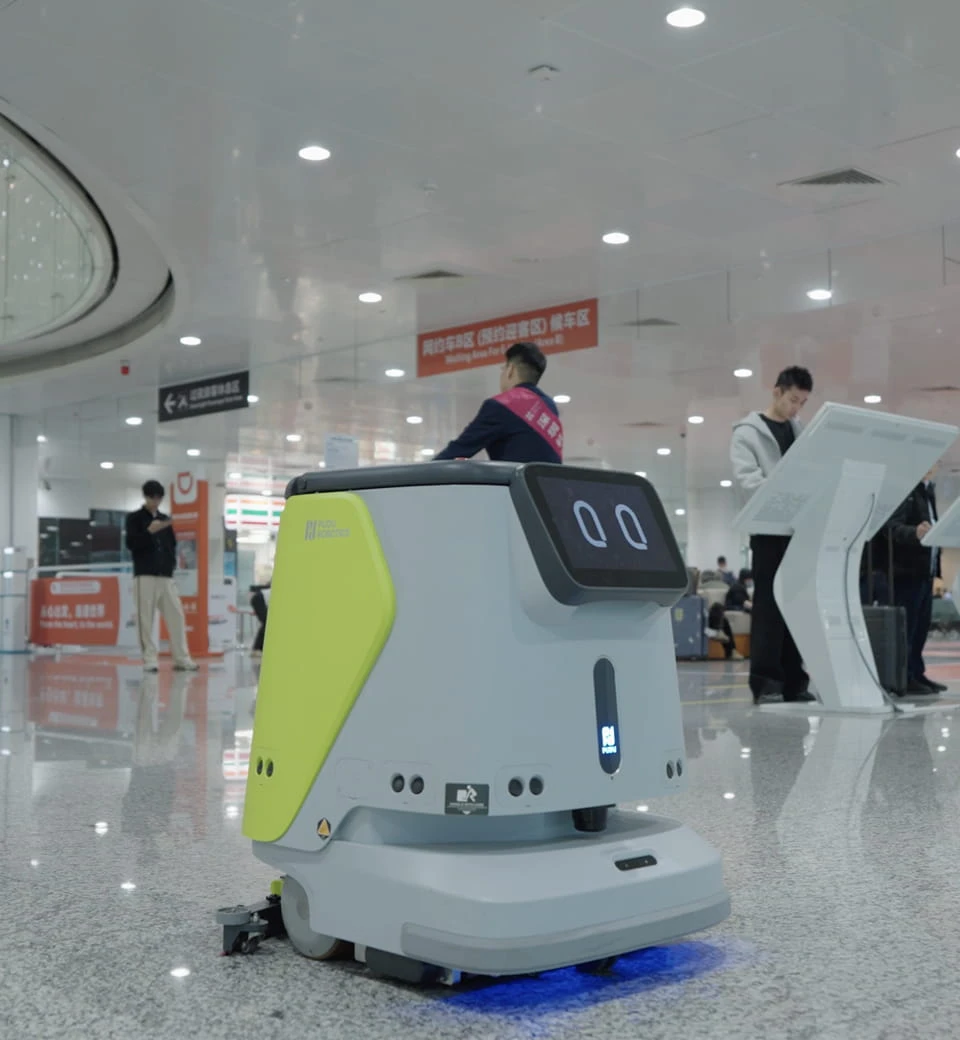 Pudu Robotics provides integrated smart solutions for airports, high-speed rail stations, metro stations, and highway service areas, combining floor cleaning, delivery, and information services to enhance operational efficiency and customer experience.